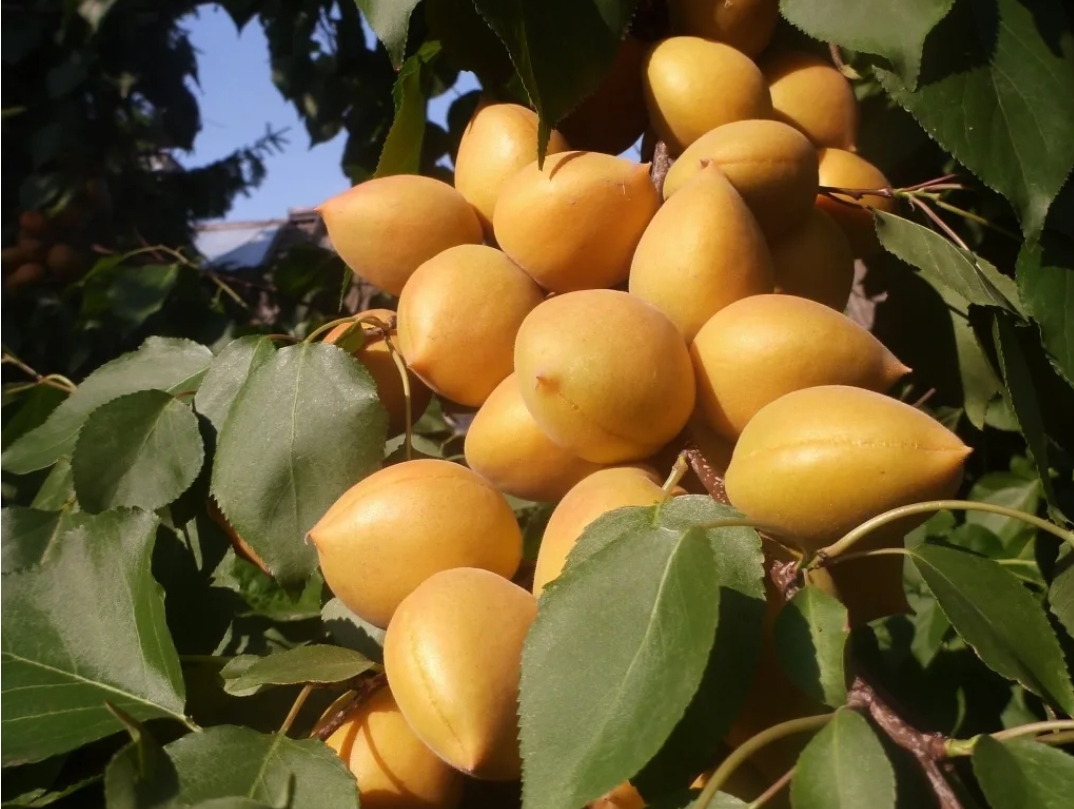 Плоды крупные, средняя масса — 40–50 г. яйцевидной формы с сильно вытянутым носиком ,ярко-оранжевые с небольшим румянцем. Мякоть ярко-оранжевая, средней плотности, сладкая с лёгкой кислинкой, умеренно сочная. Косточка свободная.