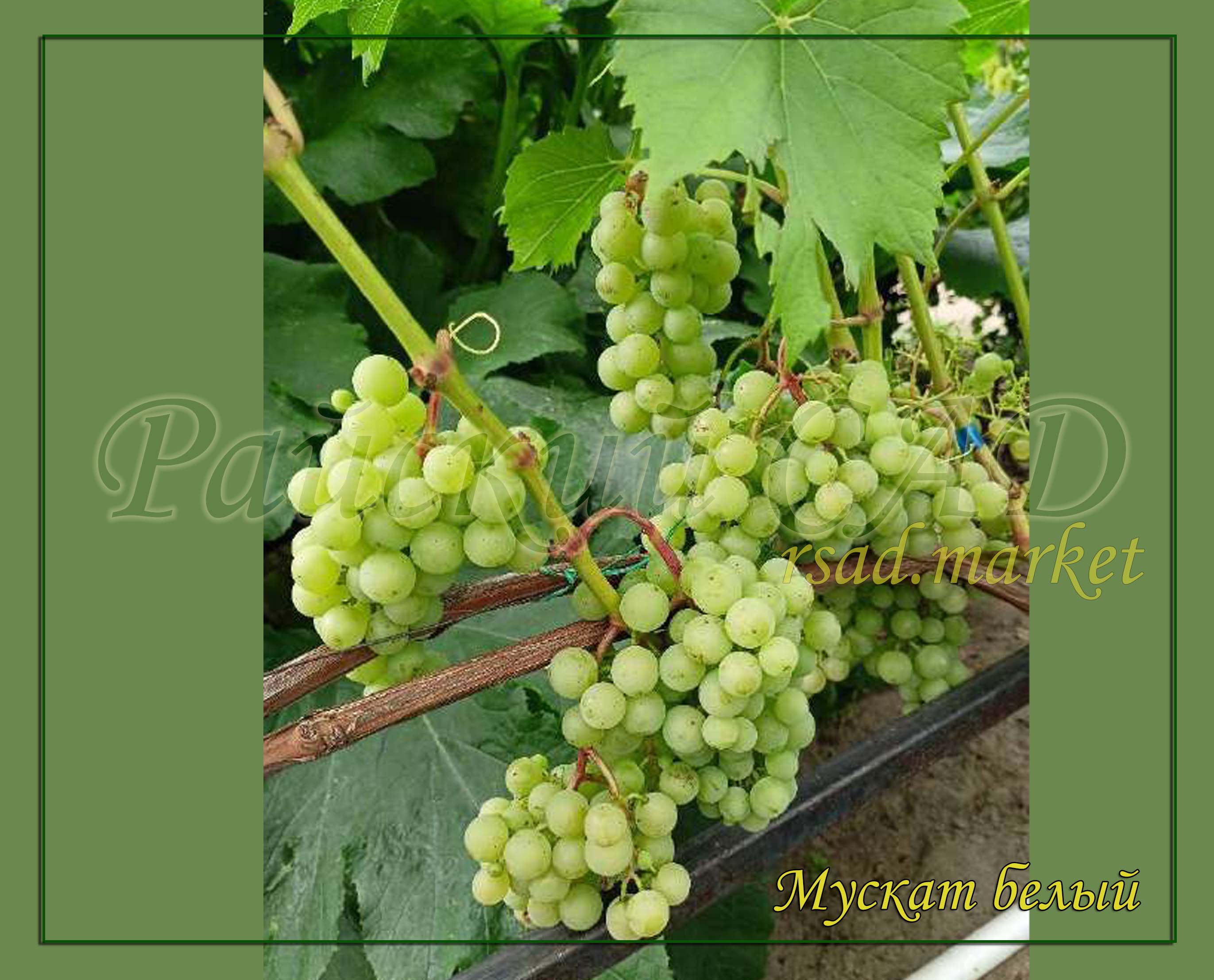 Грозди плотные, в среднем 250 – 300 гр. При короткой обрезке и повышенном агрофоне до 500 г. Цветок обоеполый. Ягоды белые, округлые, 3,5 – 4,0 гр., при созревании слегка янтарные, очень сладкие, с мускатным вкусом.