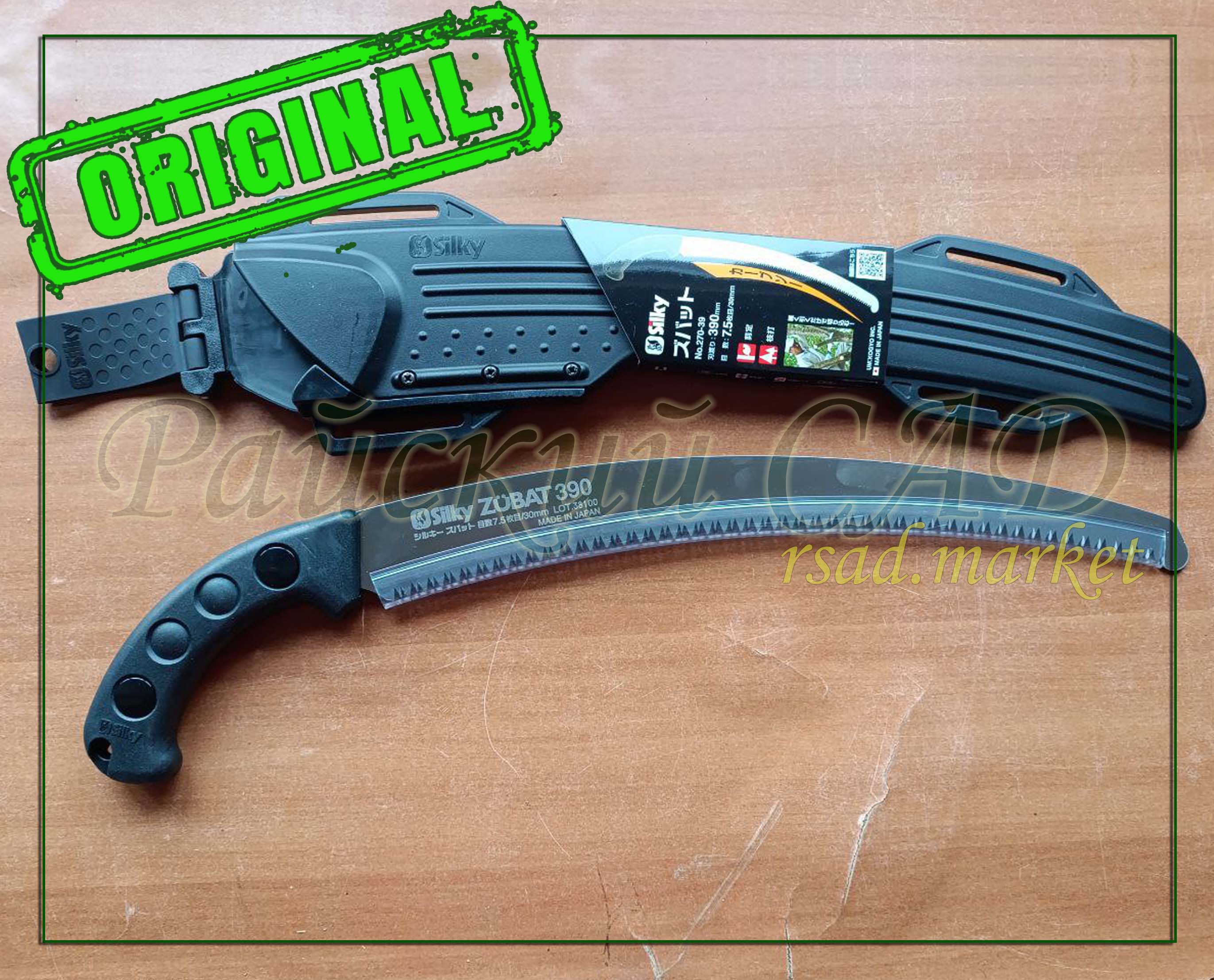 Популярная профессиональная пила Silky Zubat 390 имеет изогнутое лезвие и подходит для тяжелых условий работы по обрезке и резки больших ветвей. Полотно имеет вогнутую кромку, которая обеспечивает большую скорость распила с меньшим усилием. На конце лезвия имеется специальный упор для предотвращения соскальзывания пилы при пилении. Твердое многослойное хромирование предохраняет пилу от коррозии. Острые закаленные зубья направлены к рукояти, имеют 4-ре режущих грани, что обеспечивает быстрое и чистое пиление. Прекрасное сочетание лезвия высокой производительности со встроенной не скользящей мягкой резиновой рукояткой сделали эту пилу исключительной. Рукоять надежно крепится к пиле с помощью стальных винтов. Прочный полипропиленовый черный чехол имеет зажим для ремня и позволит иметь пилу всегда под рукой, когда она необходима, и также надежно фиксирует пилу. Небольшой вес пилы позволил ей стать незаменимым помощником в походе. Рекомендуем подбирать пилу в соотношении диаметра ветвей и стволов, которые обычно пилите, они должны быть меньше или равны 3/4 длине полотна.