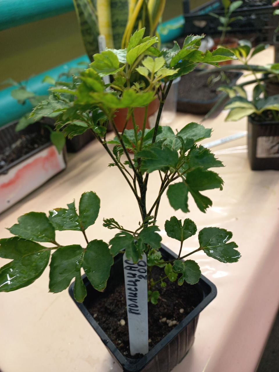 Полисциас - требует высокой влажности воздуха,  рассеянного освещения.