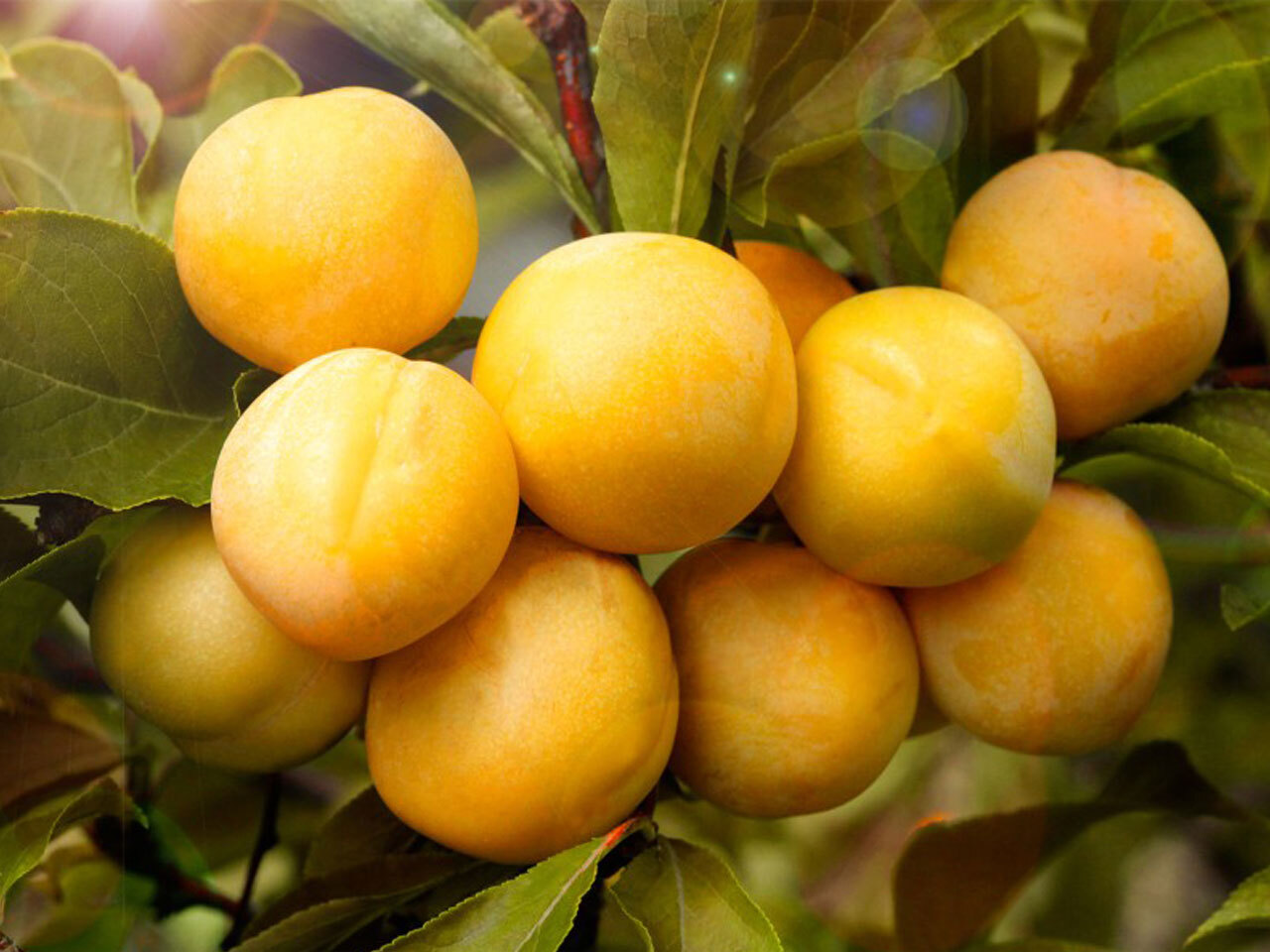 Плоды вышесреднего, желтые, среднесочные, приятного вкуса с абрикосовым ароматом. Косточка почти отделяемая.