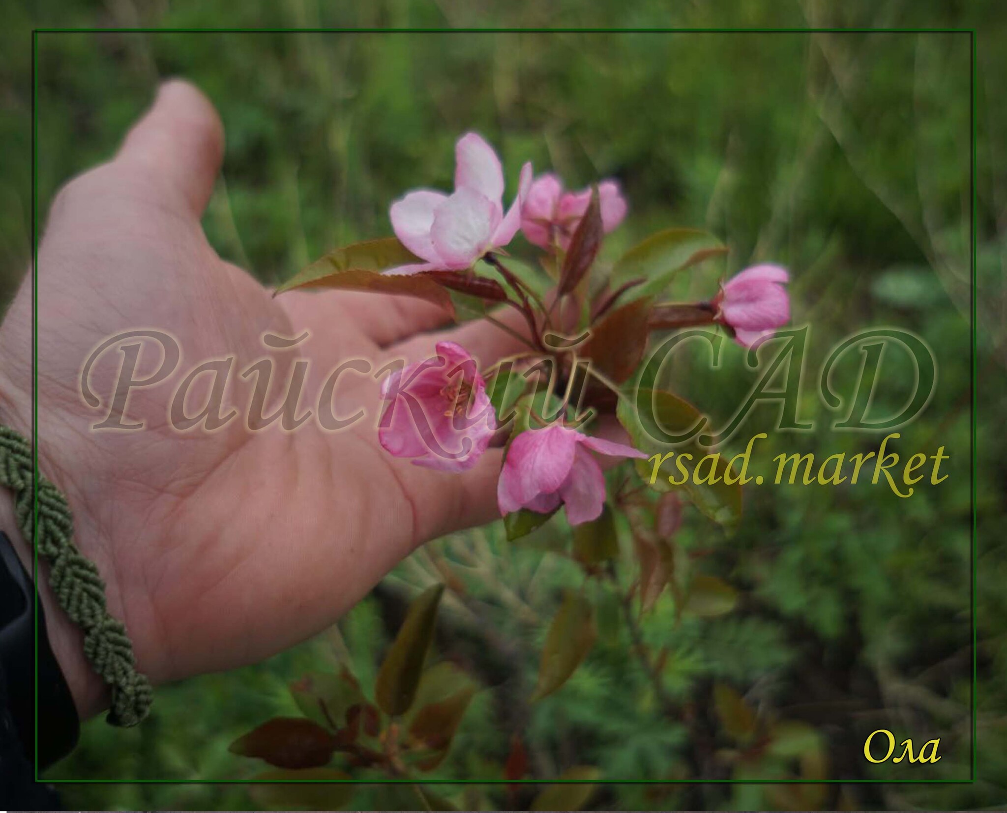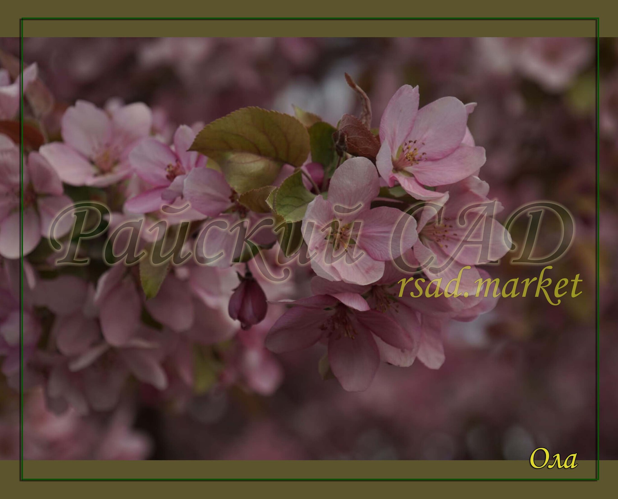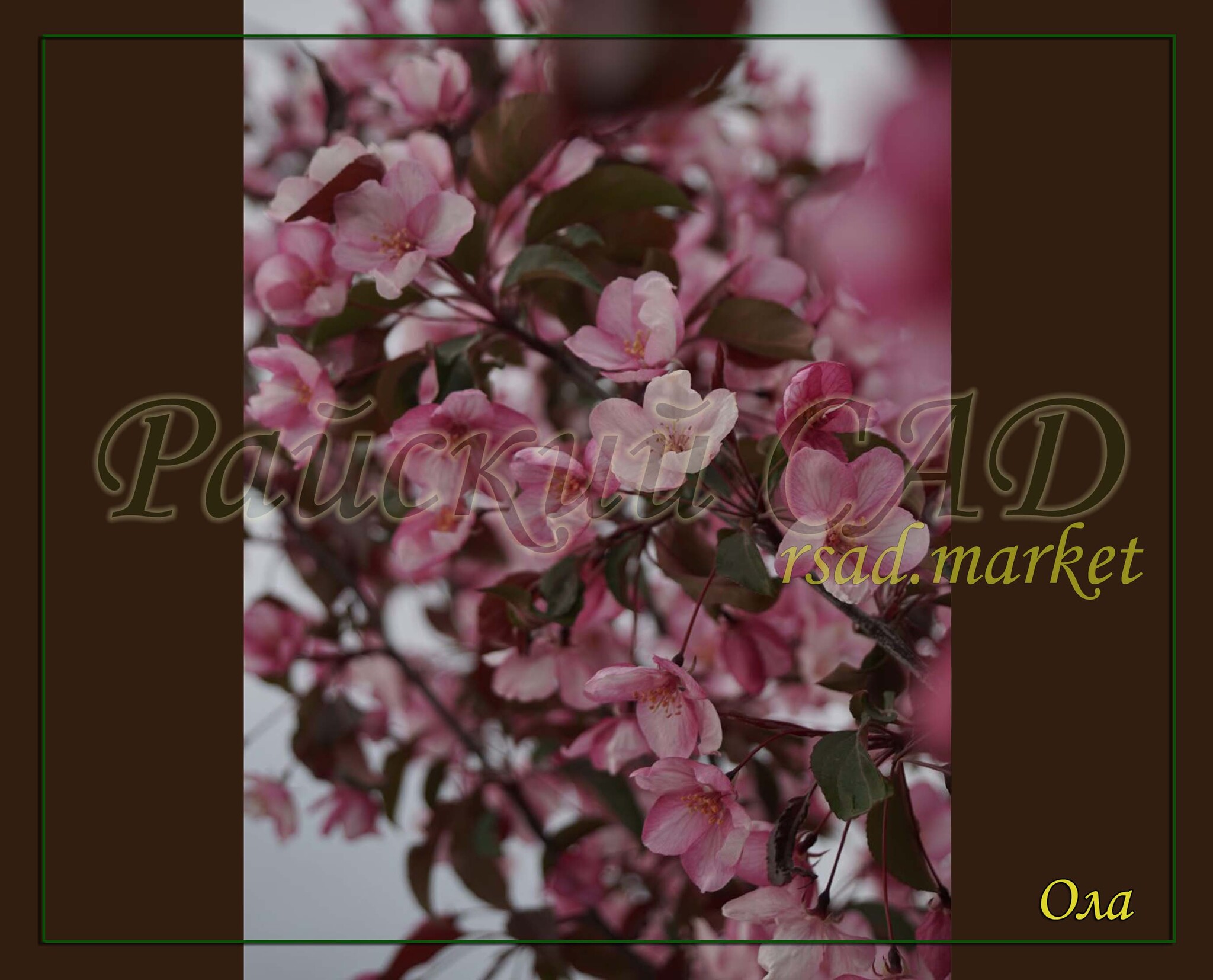 Листья блестящие, бронзово-зелёные, при распускании красновато-бронзовые. Цветки крупные, ярко-розовые. Плоды диаметром около 3 см, пурпурные. Зона USDA 4.