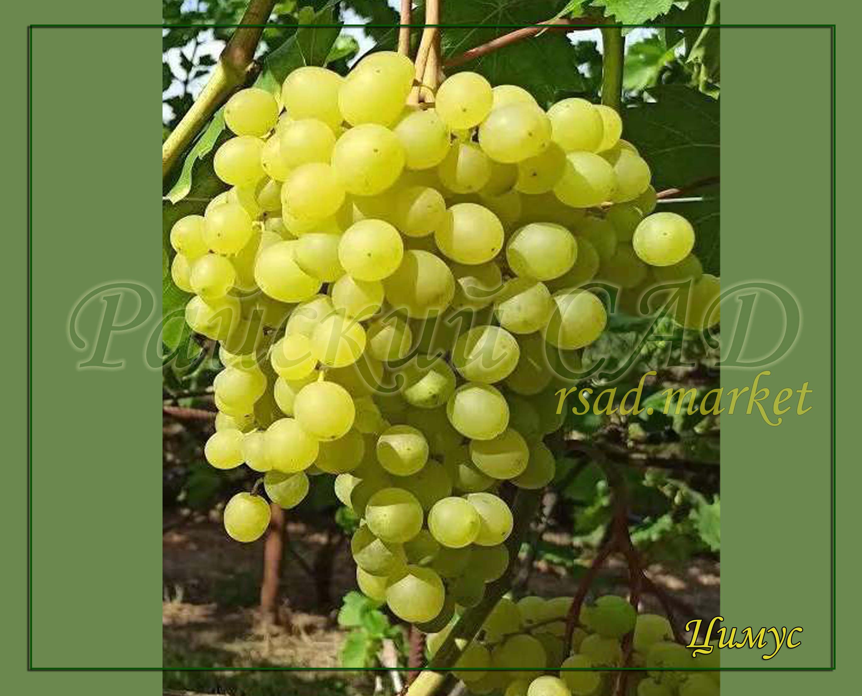 Ягода средняя, массой 4 - 5 гр., овальная, белая, на солнечной стороне золотистая. Мякоть мясисто-сочная, плотная, кожица тонкая, во вкусе ярко выражен мускатный аромат цитронного типа.
